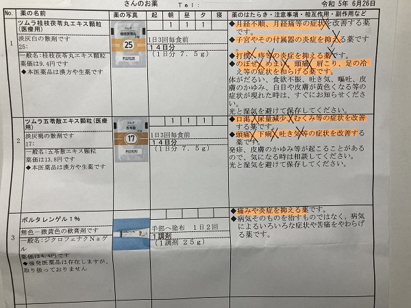 そこで、整形外科に電話をして確認したところ、整形外科の先生が師事している漢方薬の専門家が、2種類の漢方薬を推奨しているので間違いないとのこと。