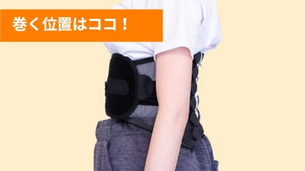 巻く位置は骨盤にかかる腰。