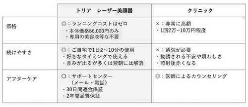 クリニックの高額な美容レーザーと比べてトリアはコスパ◎。