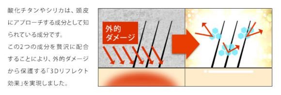 この2つの成分を贅沢に配合することにより、外敵ダメージから保護する「3Dリフレクト効果」を実現!