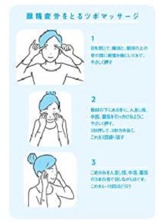 蒸しタオルを使って十分に目の周りをほぐしたら、次は眼精疲労に効くツボをマッサージ。