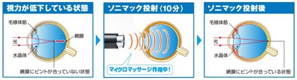 超音波治療器「ソニマック」は、”目のマイクロマッサージが視力低下や疲れ目の視力回復を実現!”ということですが、実際にはどのような効果があるでしょうか?