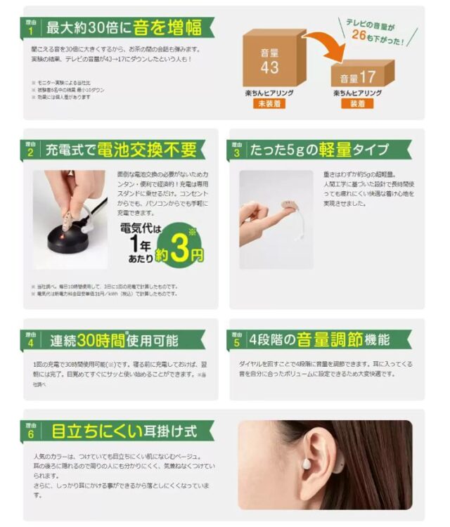【集音器「楽ちんヒアリング」が聞こえのお悩みを持つ方に選ばれる6つの理由】