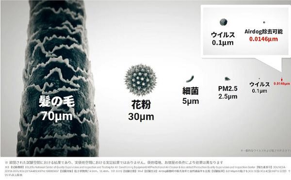 ウイルスの6分の1サイズ0.0146μm*の微細粒子まで除去!