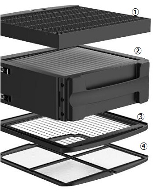 Airdogの空気清浄プロセスによりオゾンが発生しますが、このオゾン除去フィルターが、Airdogの空気排出口から出るオゾン濃度を国際安全基準0.05ppm※5よりもさらに安全な0.01ppmまで取り除きます。